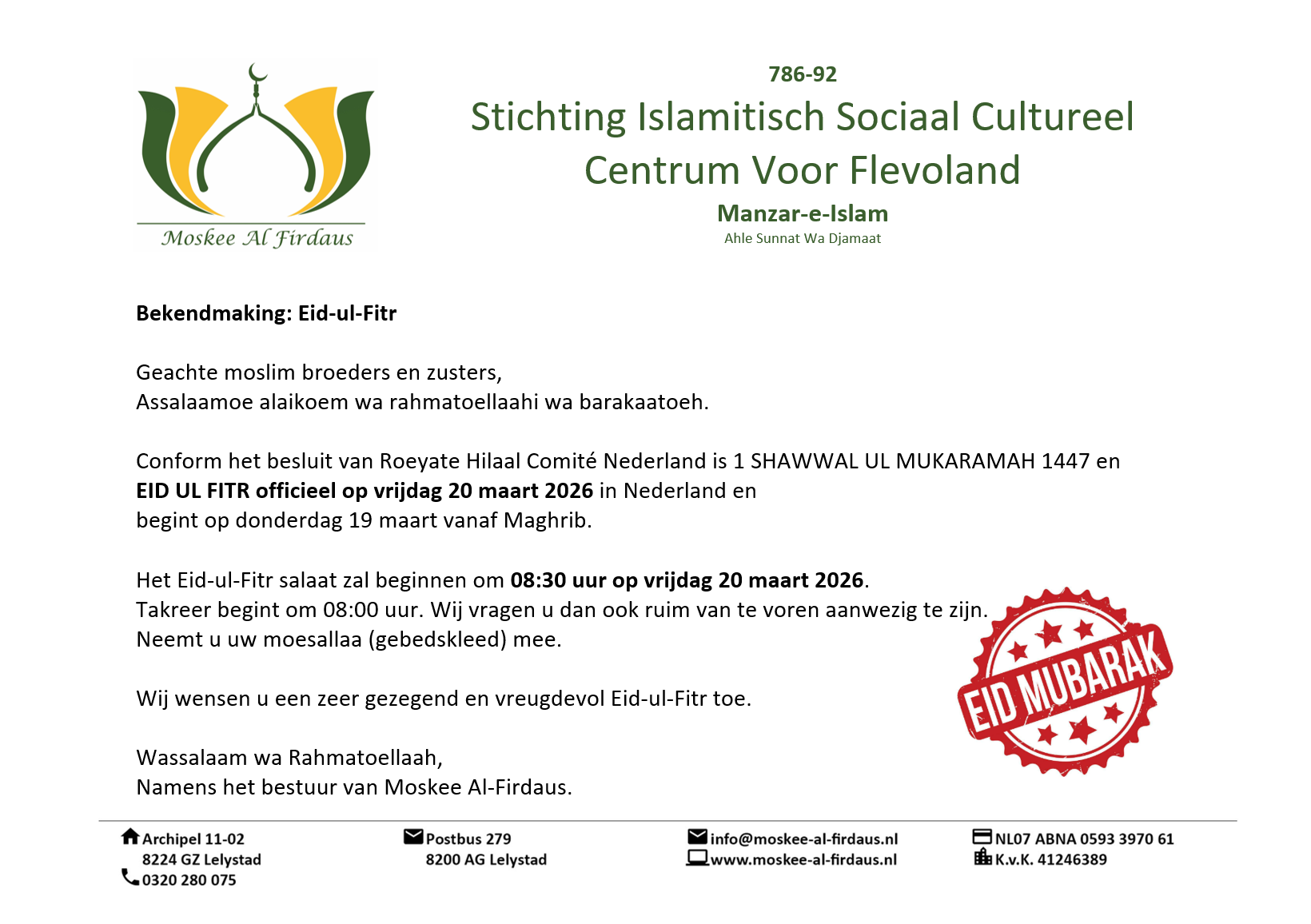 · 2 Rakaát Nafl: In elke rakaát 1x soerah Fatiha, 1x lenna Anzalnahoe(Soerah al Qadr), 3 x Qoel HoeWallahoe Ahad (Soerah Ichlaas). Na Salaam leest men de bovenvermelde smeekbede.